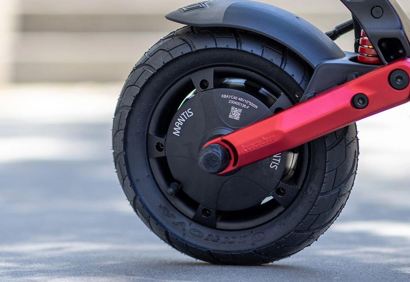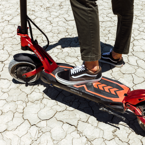 The Mantis 10 Plus uses 10×3.0 pneumatic (air-filled) road tires, which provide better shock absorption, stability, and comfort compared to solid tires.