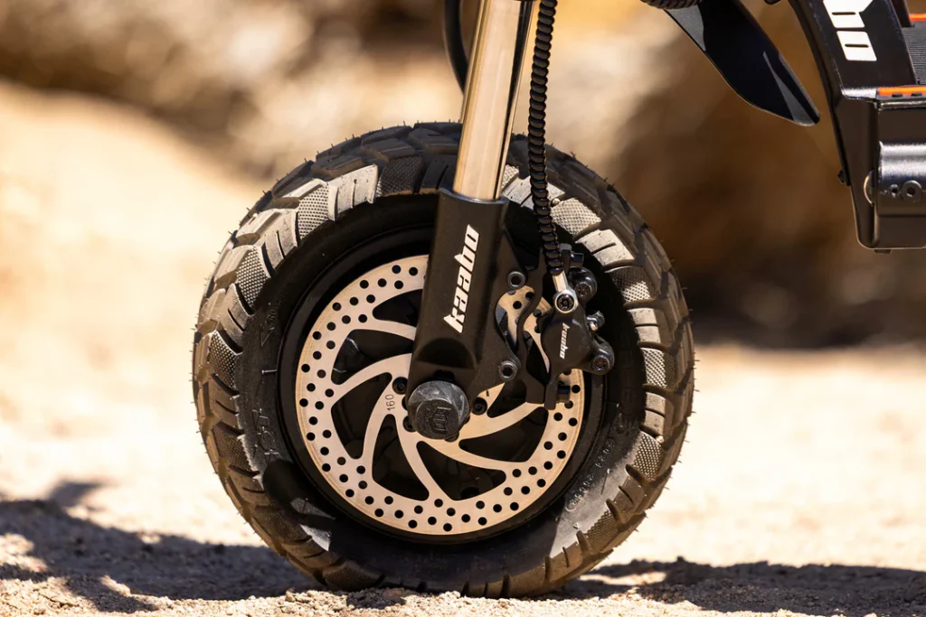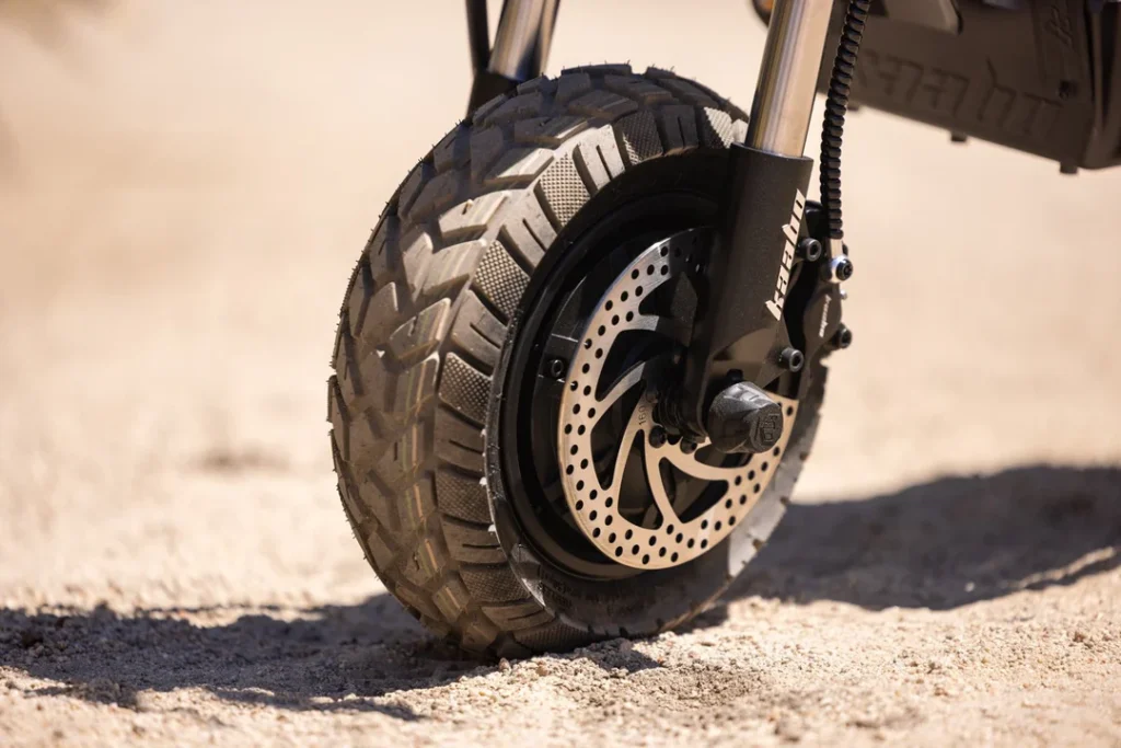The Wolf Warrior 11 Max uses 11-inch tubeless, puncture-resistant tires, similar to those used on cars and motorcycles.