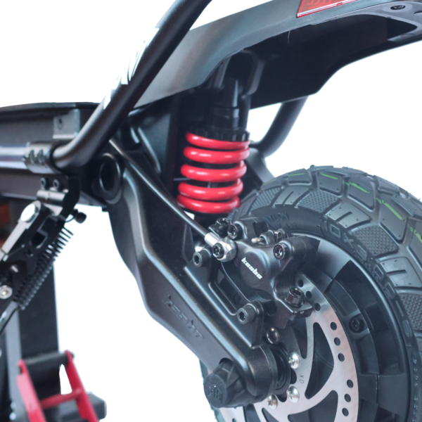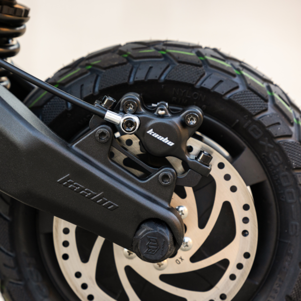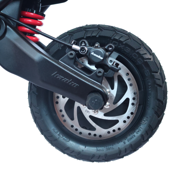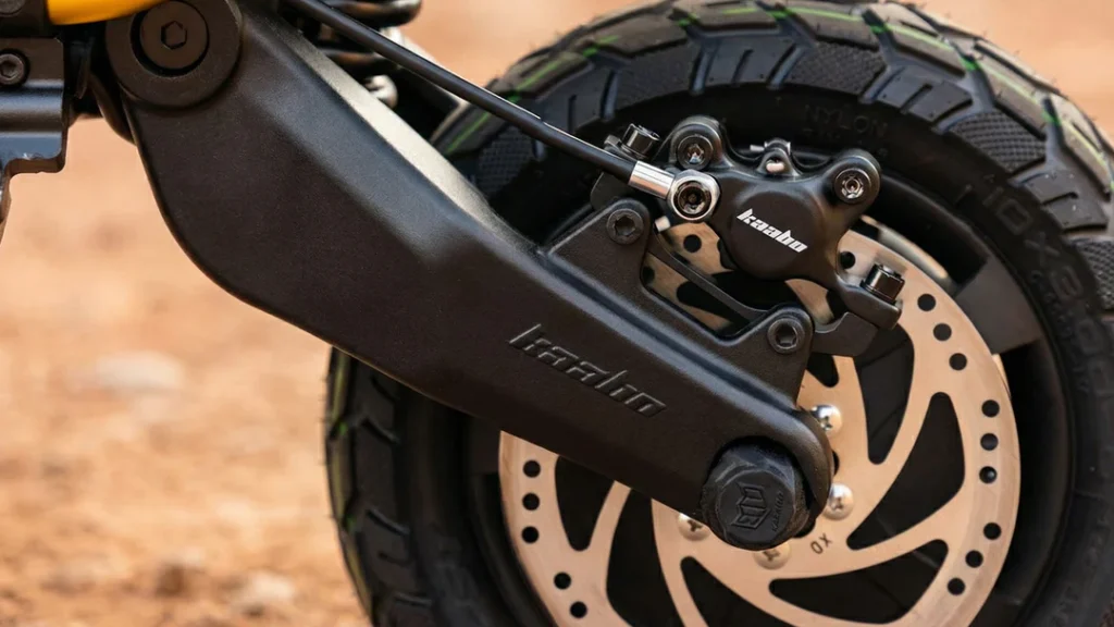 The Kaabo Warrior X Max features premium Zoom hydraulic disc brakes designed for consistent and controlled stopping power. The system responds smoothly under different riding conditions, helping riders maintain stability and confidence when slowing down or coming to a full stop.