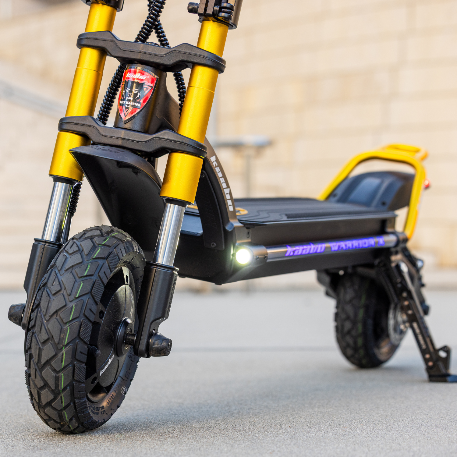 The Warrior X Max adopts Kaabo’s distinctive dual-stem architecture to reinforce the front assembly and create a stiffer, more balanced chassis. This design reduces unwanted flex under load while keeping steering precise and predictable.