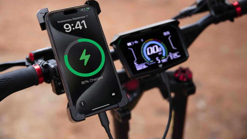 This seamless charging solution reduces the need for power banks and ensures your device remains ready throughout your journey — whether commuting through the city or exploring longer routes.